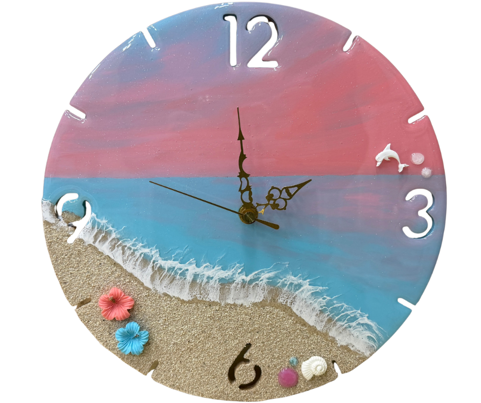 3・6・9・12の数字をバランスよく配置した、見やすくておしゃれな海レジン時計。インテリアとしても実用的にお使いいただけます。リビングや寝室に飾れば、時計を見るたびにその時の楽しい思い出が蘇ってきます♡